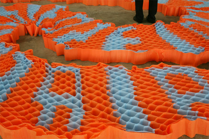 dimensions variables, papier de soie, sacs en toile occultante, 1998
